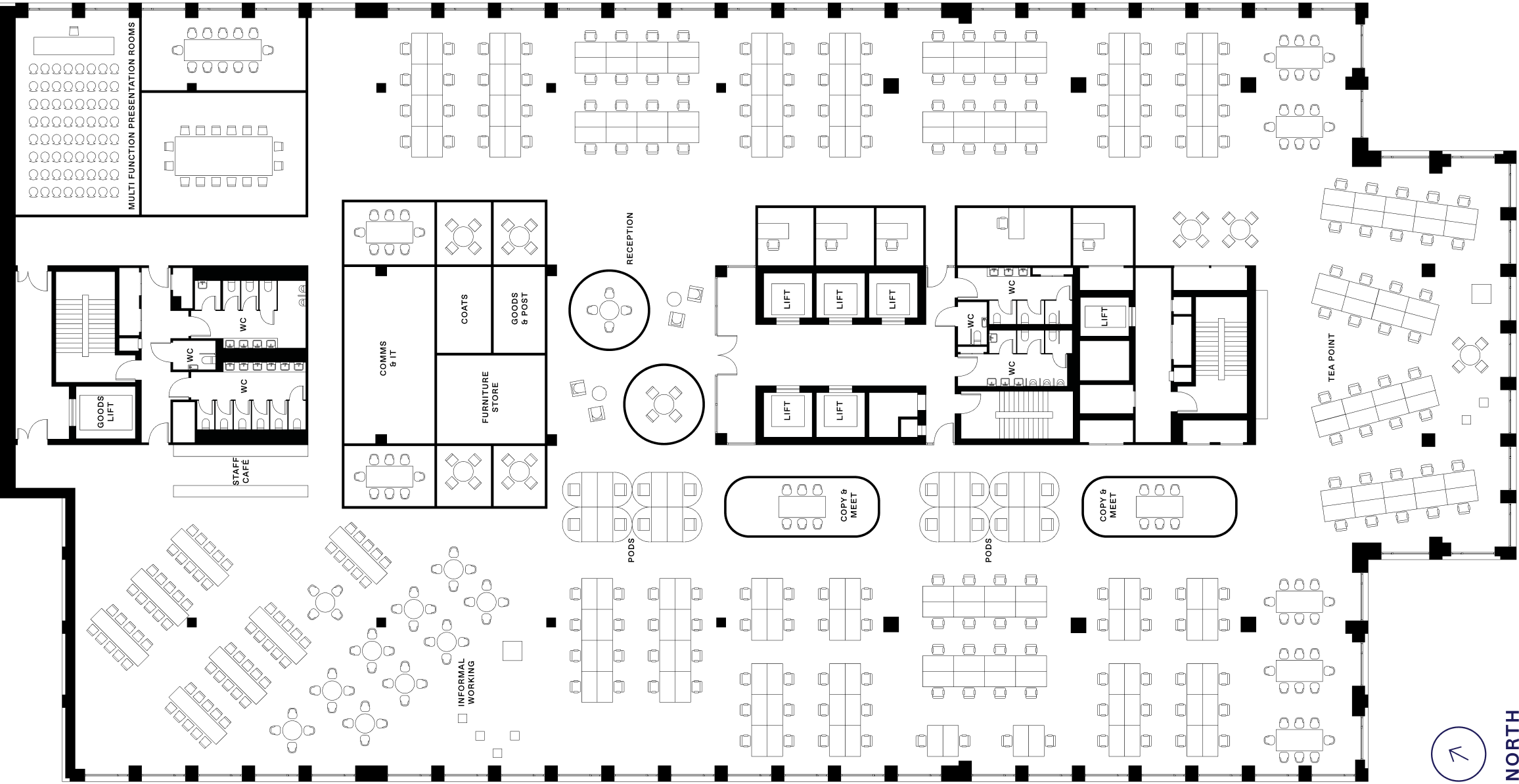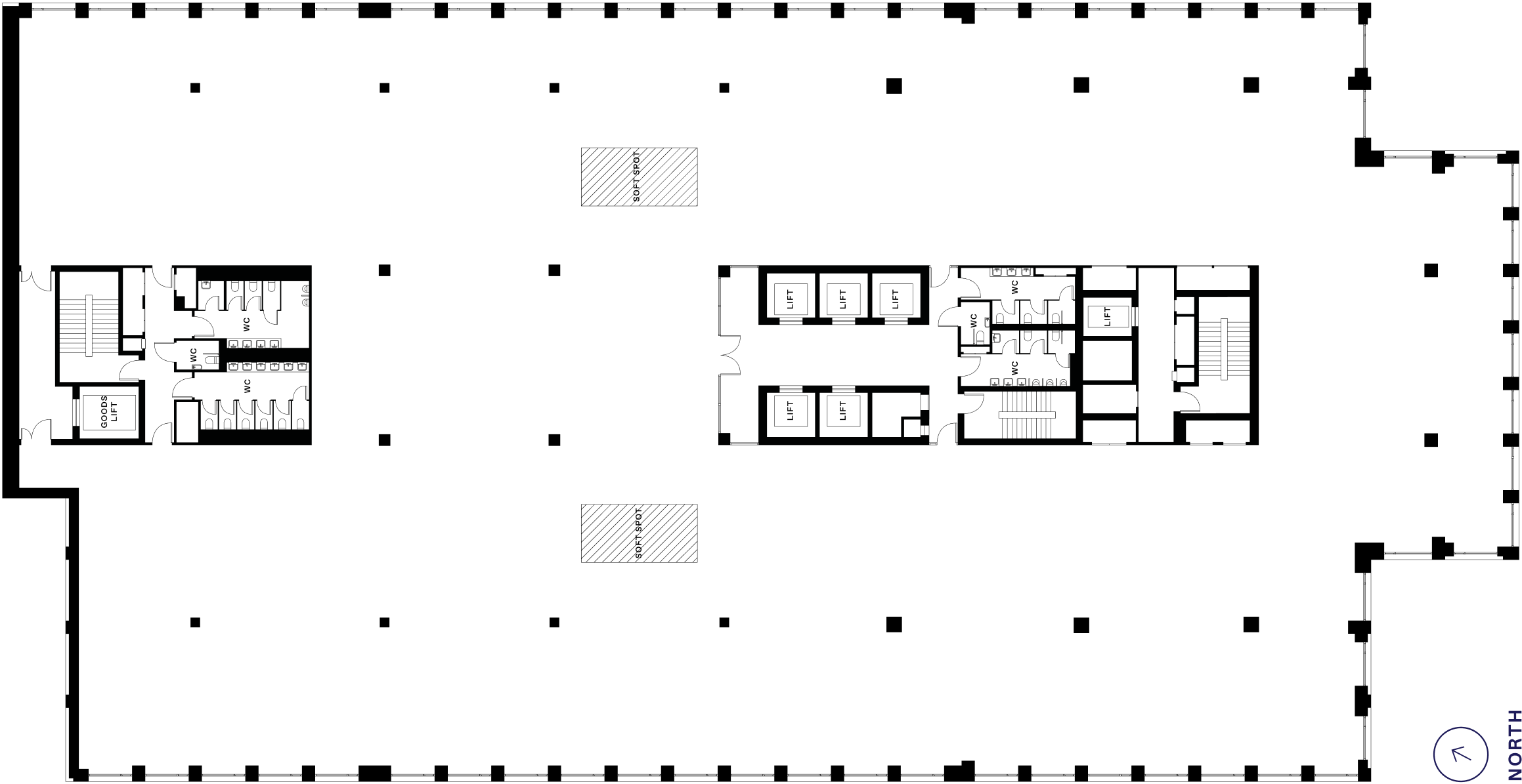 The Arc's tiered form cuts an unmistakable figure against the surrounding cityscape. The spacious, flexible office spaces of the 7-floor red-brick podium building are well-lit by natural light pulled in through large windows overlooking the quieter Wellesley Terrace and Shepherdess Walk.